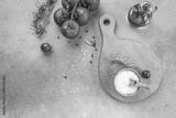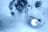 Spices, Herbs, Cutting board for cooking on a light background, banner, menu, recipe place for text, top view
