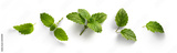 fresh mint leaves collection with real transparent shadow isolated on transparent background; png food design element