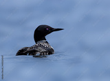 Beautiful common loon with bright red eye swims in calm Pelican Lake, Minnesota .tif