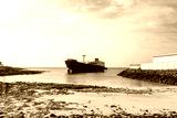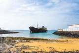 The Telamon shipwreck on the sea under a blue sky and sunlight in Lanzarote Island , Spain