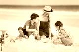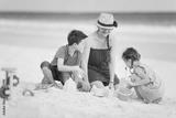 Mother and kids playing at beach