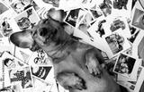 Cute dog among the photos