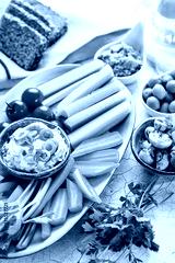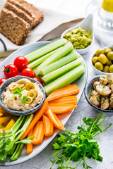 Summer crudites platter with hummus and avocado dip