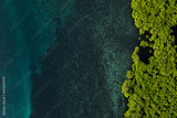Beautiful Mangrove island landscape and scenery during blue sky, sunrise and sunset from aerial view