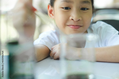 Little child with learning science class in school laboratory
