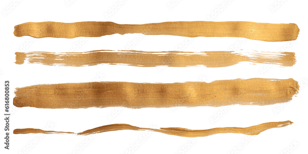 Grunge Gold ink color smear brush stroke stain line blot on transparent background.