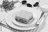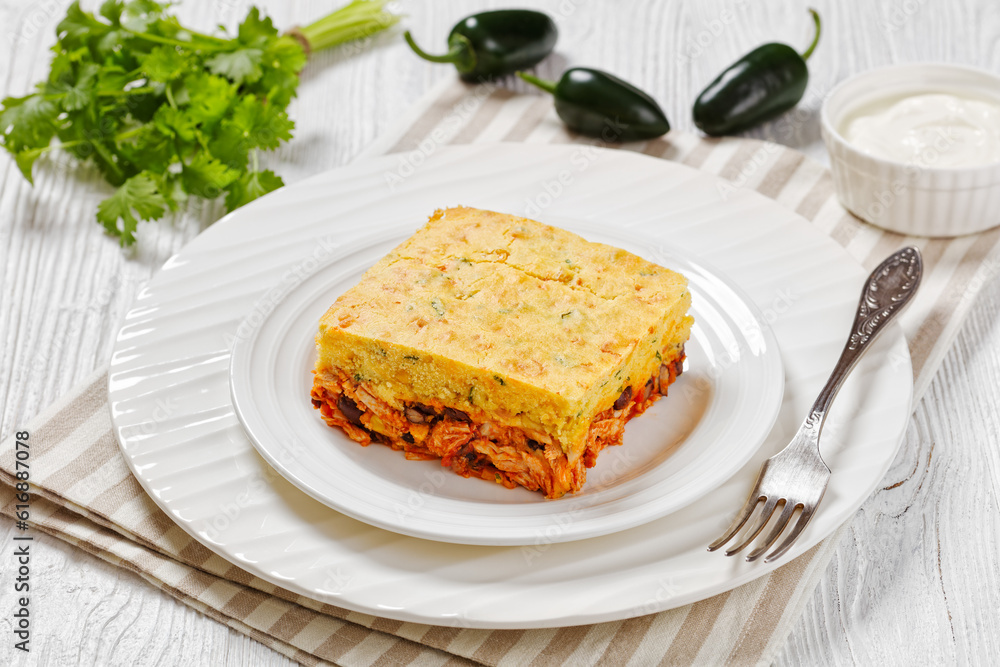 Chicken Tamale Pie on white plate, top view