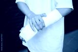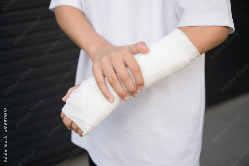 子どもの骨折や打撲、捻挫をして腕を固定するイメージ 痛がる