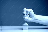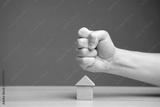 The fist aims at the house. Сollectors. Concept of threat to house and real estate and business. The threat of a strike at prices. Aggression on the market.