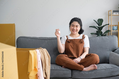 Woman owner buy purchase home, relocate to dwelling, rental, rent, ownership concept