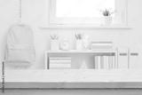 Blank wooden table top on blurred schoolchild room interior background
