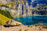View of Oeschinen lake (Oeschinensee) and Swiss Alps near Kandersteg in Bernese Oberland, Switzerland