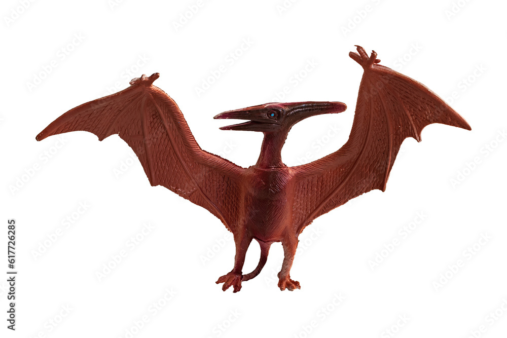 Small toy dinosaur, Pteranodon, isolated on blank background.