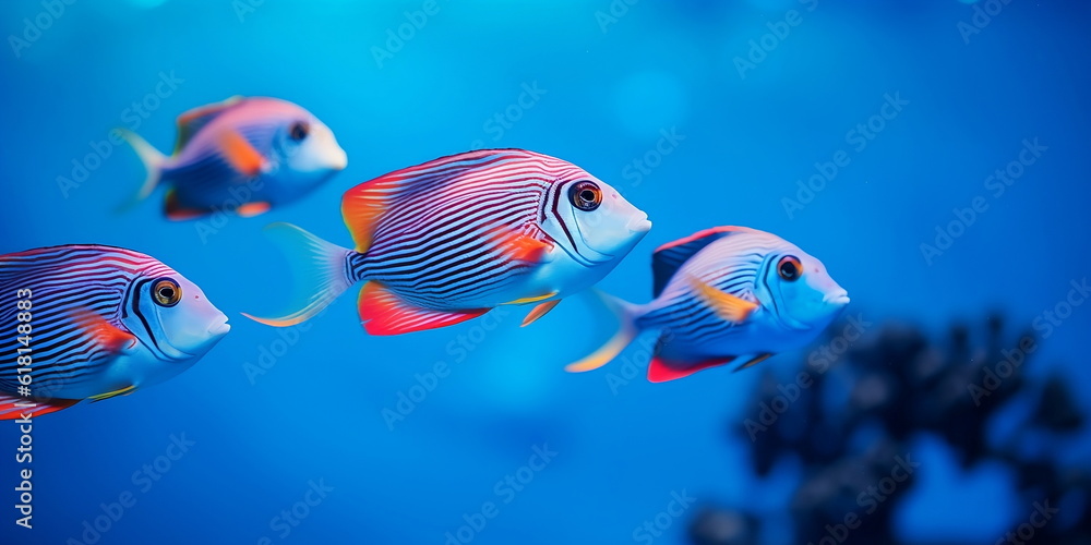 Tropical sea underwater fishes on coral reef. Aquarium oceanarium wildlife colorful marine panorama landscape nature snorkeling diving