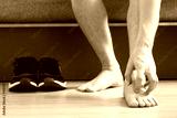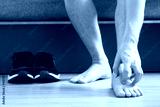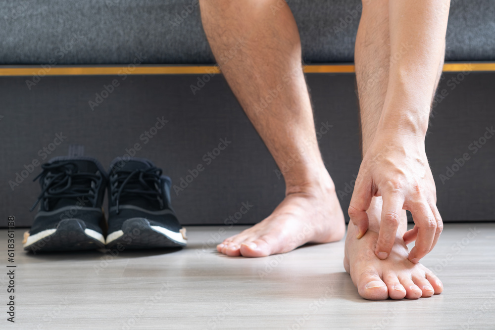 Men wear canvas shoes, he scratches legs and feet with itchy skin. Caused by of shoes