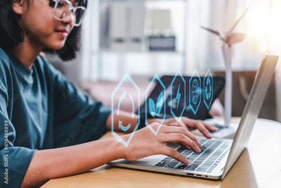 Environment and electric power, Circular economy concept. crystal globe with a circular economy around it. Circular economy for future growth of business and design to reuse and renewable material