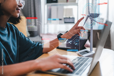 Concept programmer, Developer programming and coding technology, Hand Close up asianwoman using laptop and tablet artificial coding business data analytics programming.