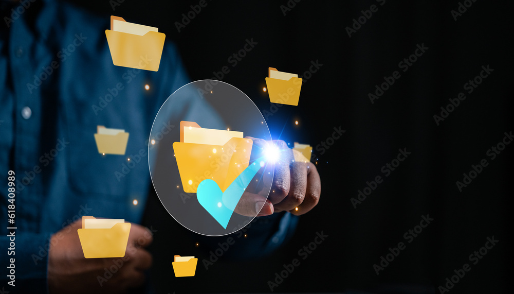 Document Management System concept. Enterprise content management, Digital asset management, Document imaging, Workflow, Record management, Online document file data software for efficient archiving.