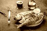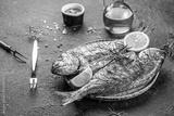 Delicious dorado baked on a grill, Detox and clean diet concept. place for text, top view