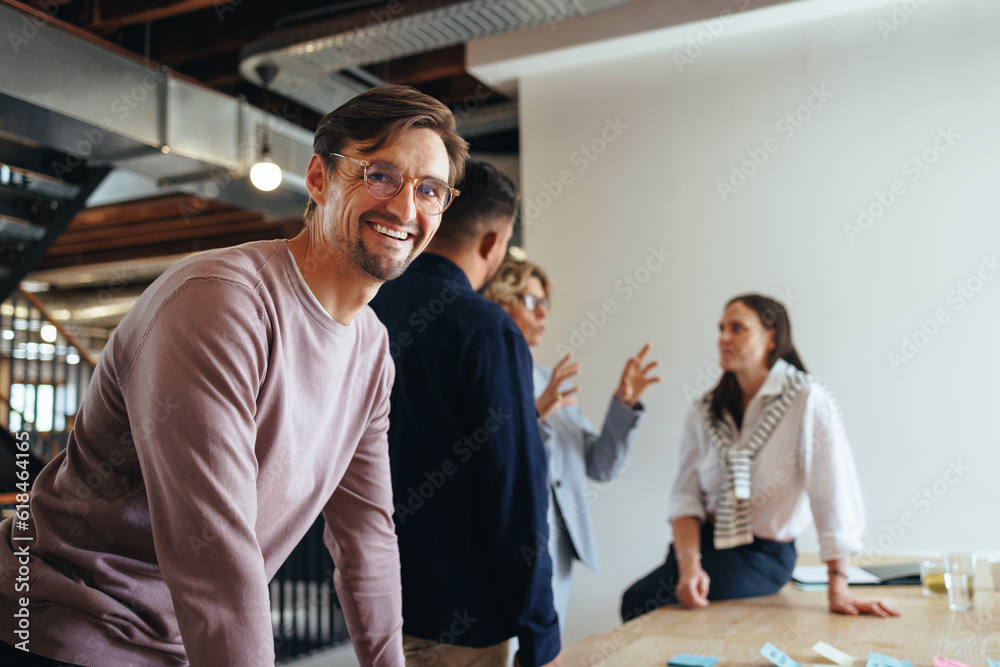 Professional man having a meeting with his team in an office