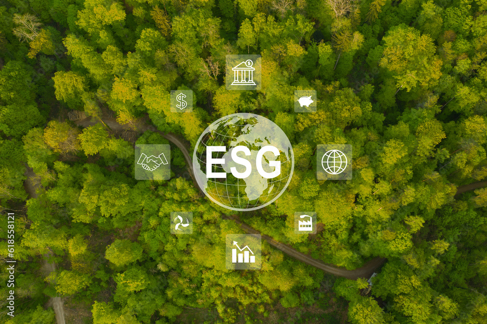 Sustainable business or green business vector illustration background with connection icon concept related to environmentally friendly environmental icon set. Web and Social Header Banners for ESG.