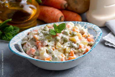 Russian salad, Olivier salad with mayonnaise and egg served (Turkish name; Rus salatasi)