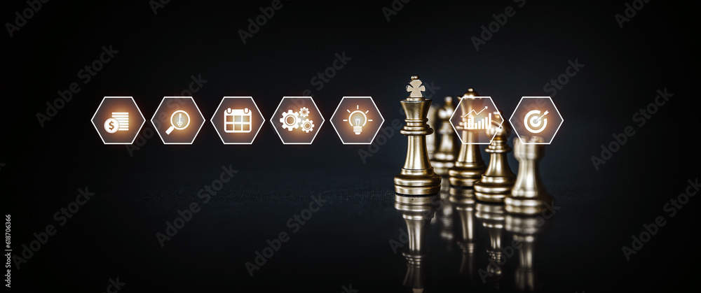 King chess pieces with teamwork concepts of leadership or wining challenge strategy and battle fighting of business team player and risk management or human resource or strategic planning.