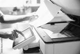 Photocopier printer, Close up hand office man press copy button on panel to using the copier or photocopy machine for scanning document or printing paper or Xerox a sheet.