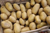 Potatoes on the market, potatoes in plastic crates , Potatoes background,