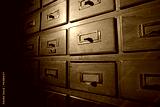 Old wooden card catalog, spot light.