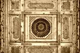 Fragment of an ancient carved wooden pattern. Ornate. Abstract background. Black and white.