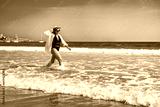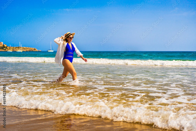 Beach holidays - woman walking on beach on Costa Dorada Spain