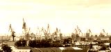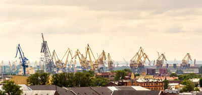 View of harbor cranes on sky background, Saint Petersburg, Russia