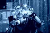 Concept technology for steam gaming, Internet player game. Professional Girl Gamer Plays choosing gamers from around the world, Online Cyber Games Tournament.