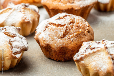 muffins and cupcakes sprinkled with powdered sugar, Food recipe background. Close up