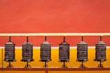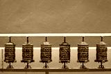 prayer mills in buddhist monastery