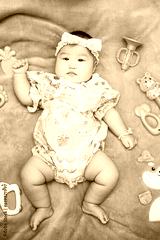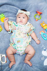 baby boy in floral dress,little baby girl six months old in a cute outfit and a bow on her head