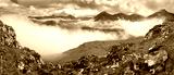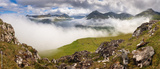 Foggy day view of Funningur village, Faroe Islands, Denmark, Europe. Picturesque summer scene of Eysturoy island. Beauty of nature concept background.