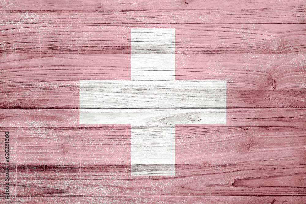 Switzerland Flag on old wood texture background. Happy 1. August. Switzerland Independence Day.