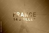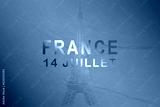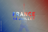 some french flags and the text text bon 14 Juillet, happy 14 July, the national day of France written in French, against an off-white background.
