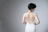 Woman in dress with beautiful back Asian (Japanese) beauty looking back Copy space on left