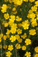 Yellow buttercup flowers in the meadow. Ranunculus repens in the italian countryside