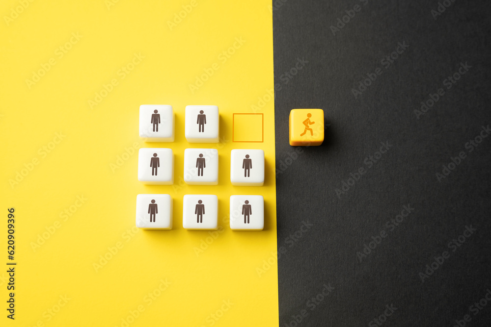 Leave the team. Run away from the group. Dismissal of an incompetent employee. Quit the job. Refuse to participate, low morale. Nonconformist. Open for new possibilities and opportunities.