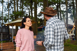 Smoking man and his wife arguing and talking