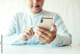 Cheerful businessmen use smartphones while sitting on the sofa at home. Handsome young asia man sitting on a couch reading messages on a mobile phone.