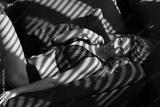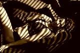 Beautiful woman in lingerie on the sofa in the light of the blinds.