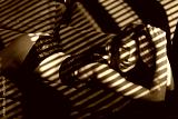 Beautiful woman in lingerie on the sofa in the light of the blinds.