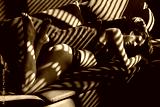 Beautiful woman in lingerie on the sofa in the light of the blinds.