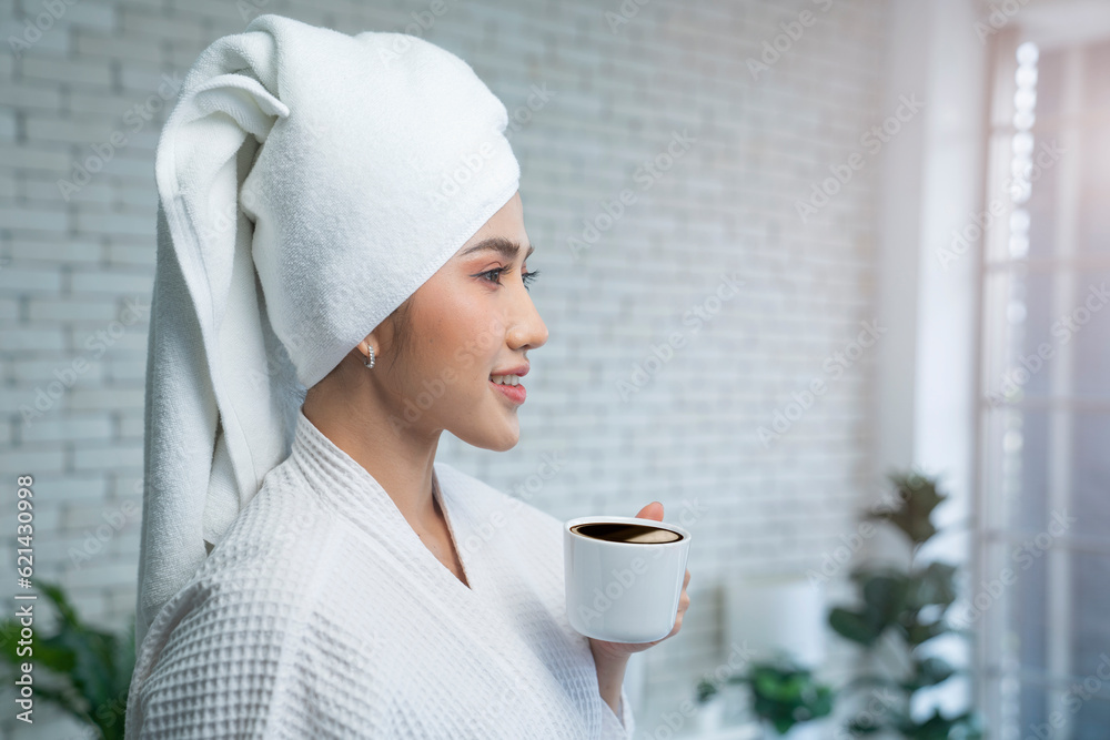 asian female drinking coffee