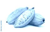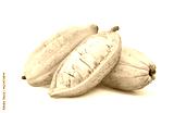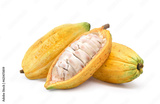 Fresh yellow cocoa pods with cut in half isolated on white background. Clipping path.